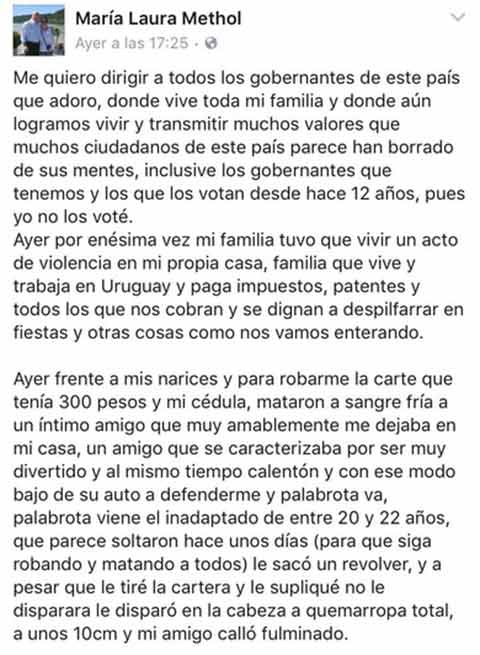 Ante este hecho, la amiga de Prati y testigo del crimen escribió una carta en Faceboo en la que se dirige a las autoriades.