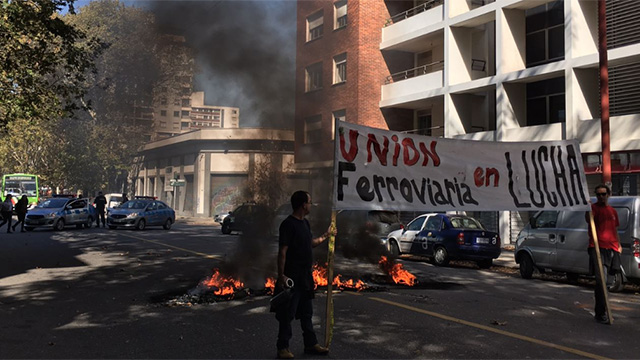 Gremio de AFE quema cubiertas, corta calle y bloquea ingreso a edificio sede