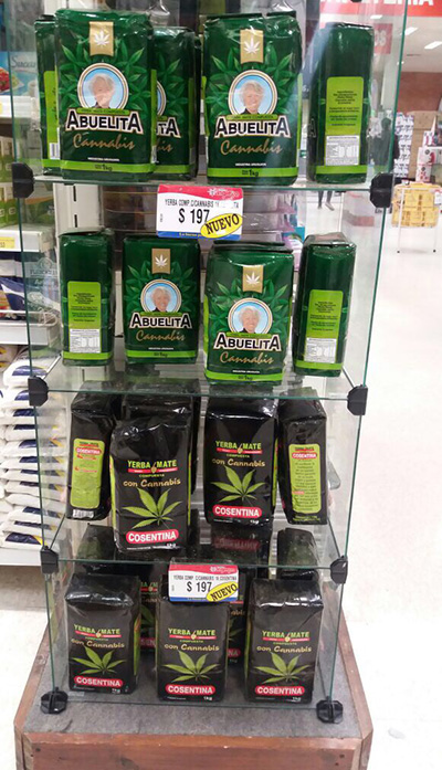 Salió a la venta la yerba con Cannabis y el producto ya está disponible en los supermercados tanto de la marca "La Abuelita" como "Cosentina". En ambos casos el paquete de un kilo tiene un costo de $ 197.