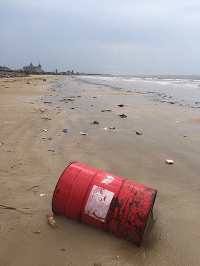 Un impresionante camino de basura se extiende a lo largo de 4.5 km sobre la costa de Montevideo, desde el Arroyo Carrasco a la calle Guarambaré a la altura de la Playa La Mulata.