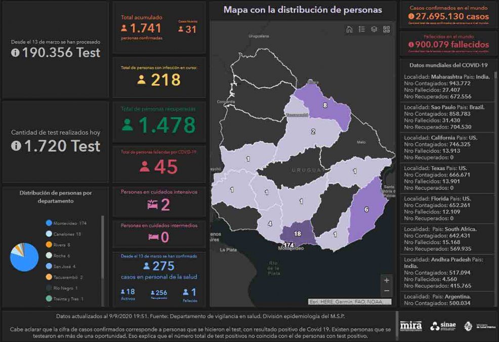 Asimismo, el Sistema Nacional de Emergencias (SINAE) aclaró que de los 24 casos que se registraron en el departamento de Montevideo, 10 corresponden a efectivos militares que regresaron de una misión en el Congo. Todos fueron derivados a un área de aislamiento que estaba previamente preparada, y se encuentran asintomáticos.