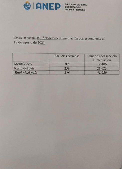 Asimismo, las autoridades constataron que fueron 87 las instituciones educativas de Montevideo que permanecieron cerradas; y 259 las que corresponden al resto del país.