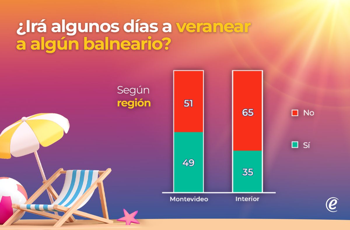 ¿Cuántos uruguayos se toman vacaciones en este verano? ¿Y cuántos van a pasar algunos días en algunas de las playas uruguayas? Consultados sobre si irían o no algunos días a “veranear a algún balneario”, más de cuatro de cada diez (42%) contestó afirmativamente que lo haría, aunque la mayoría de la población no lo hará. Sea porque no tiene licencia en esta época del año, porque no tenga recursos económicos para hacerlo, porque no pueda hacerlo por razones diversas (de salud, o familiares), o simplemente porque prefiera permanecer en su hogar, la mayor parte de la población permanece en sus hogares en esta época del año.