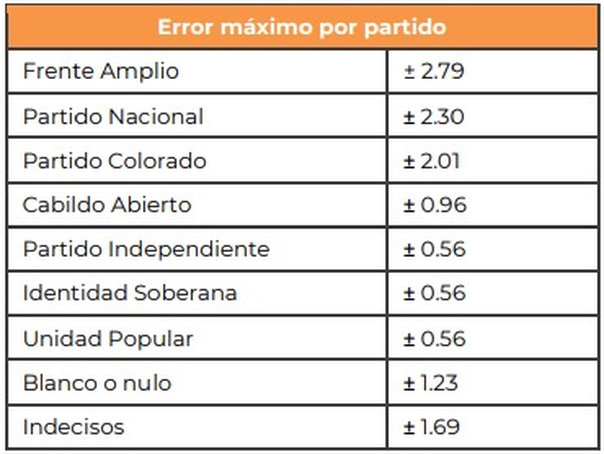 El margen de error por partido es el siguiente: