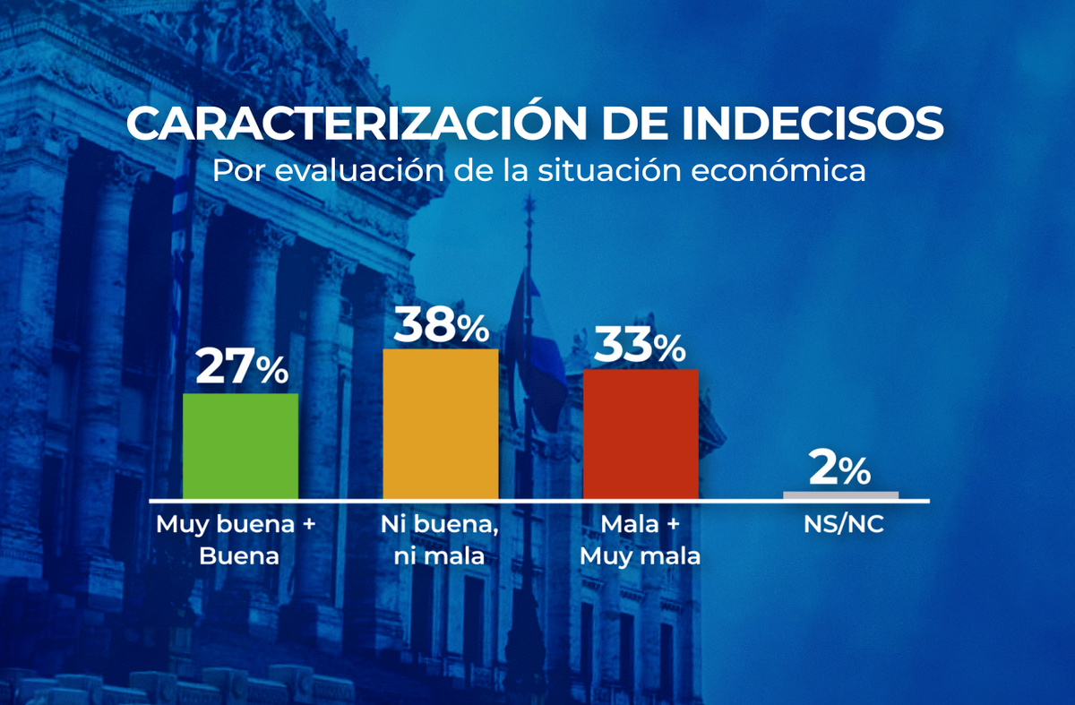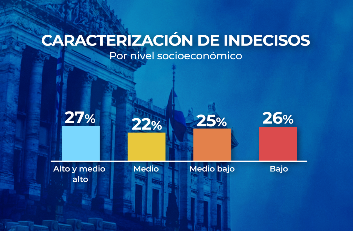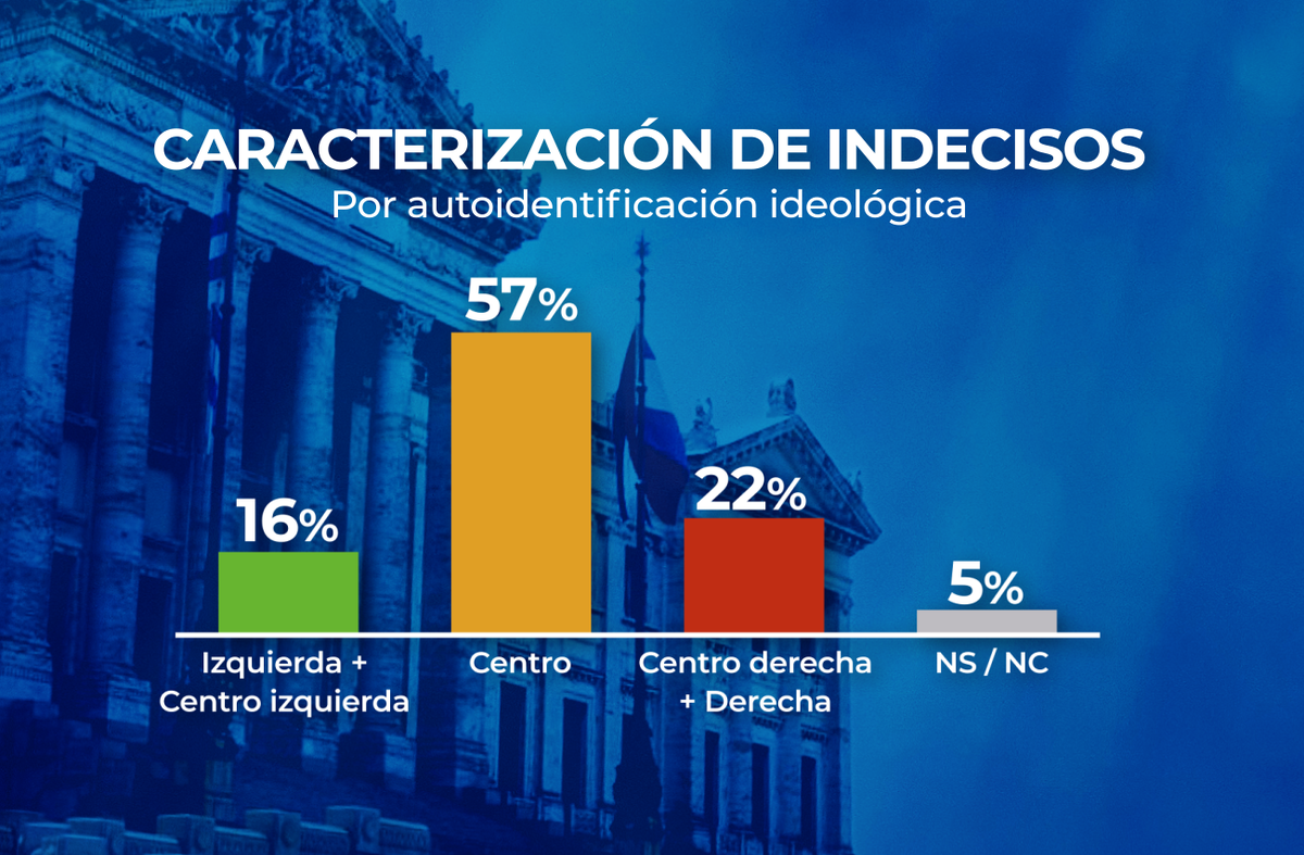 Ideológicamente la amplia mayoría de los indecisos se define de “centro”, y los segmentos que se inclinan a la izquierda y la derecha son relativamente equilibrados, con leve mayor inclinación a la derecha.