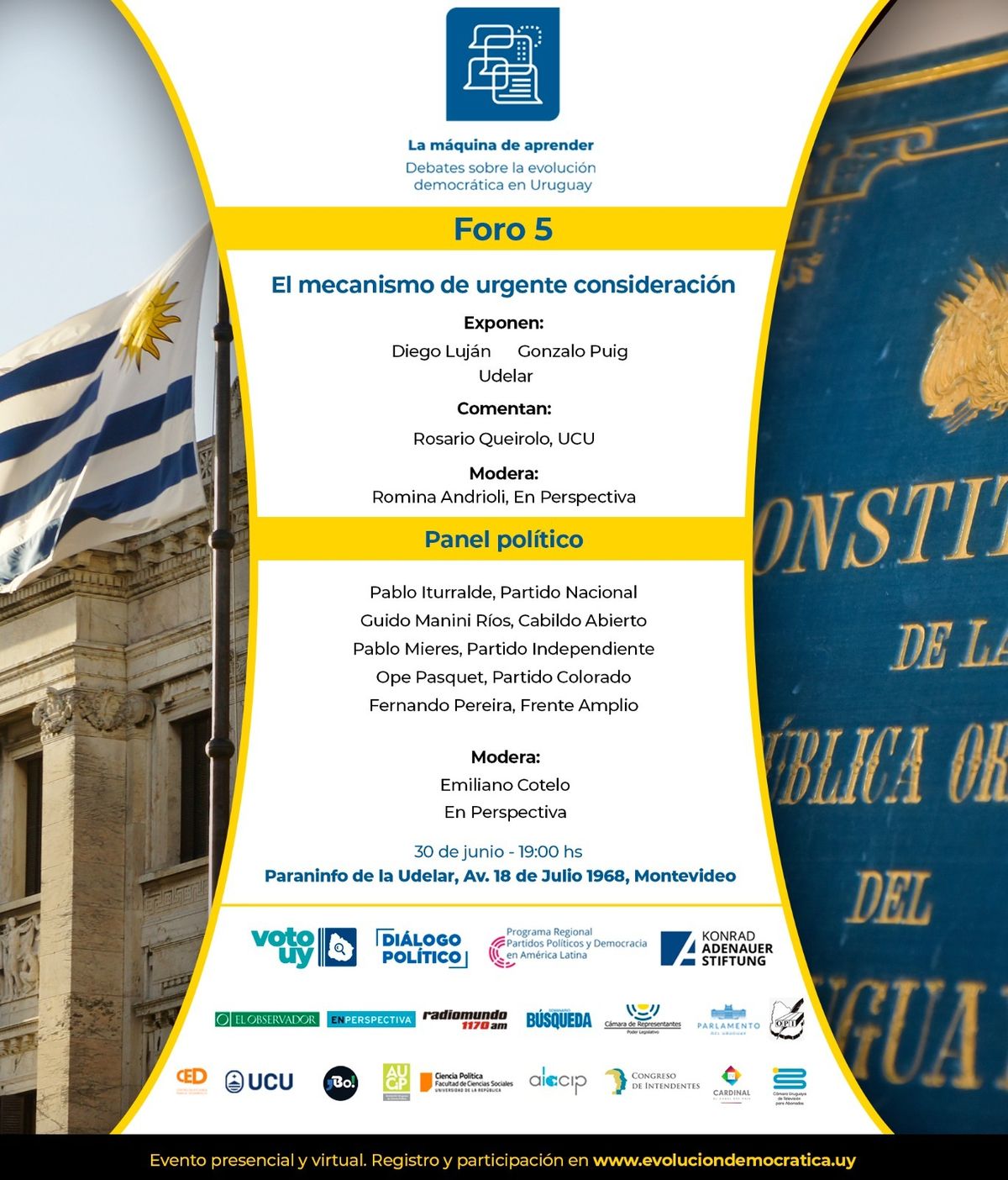 Académicos y políticos expondrán este jueves a la hora 19 en el Paraninfo de la Universidad de la República (UDELAR) sobre el mecanismo de urgente consideración.