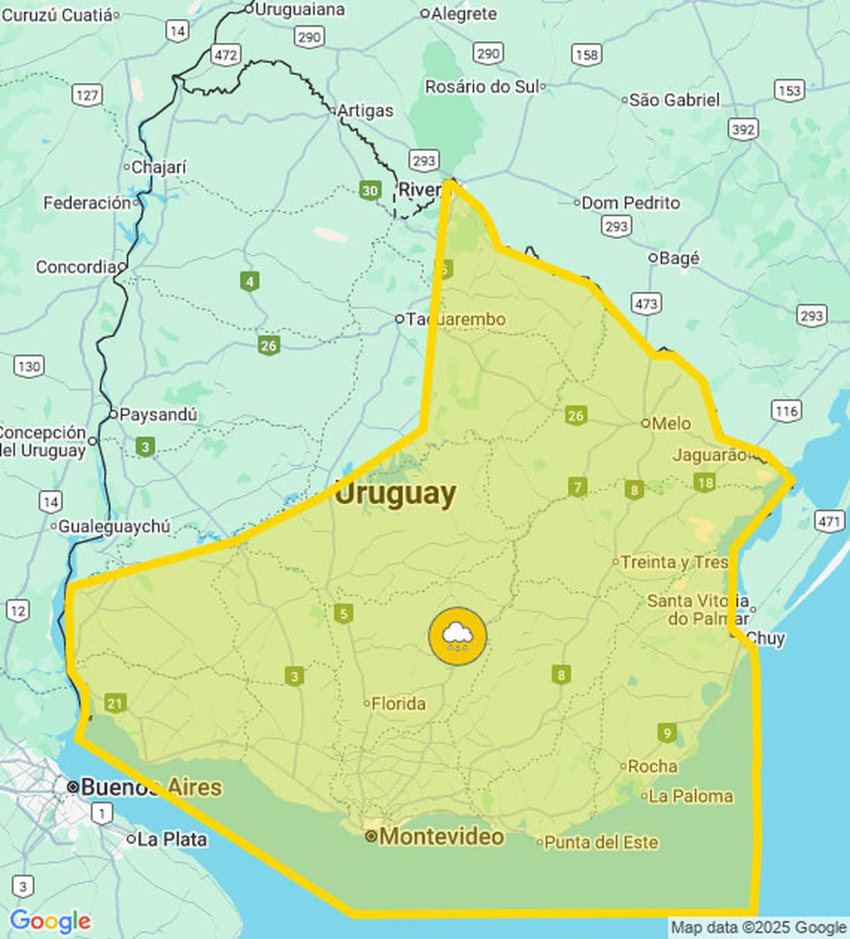 Gran parte del país bajo advertencia amarilla por tormentas puntualmente fuertes y lluvias abundantes