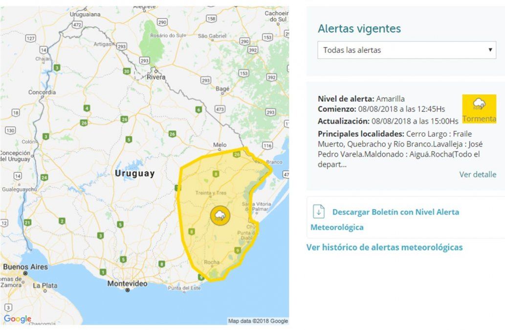 Localidades de Cerro Largo, Lavalleja, Maldonado, Rocha y Treinta y Tres están comprendidos en el llamado de atención. Detalles.