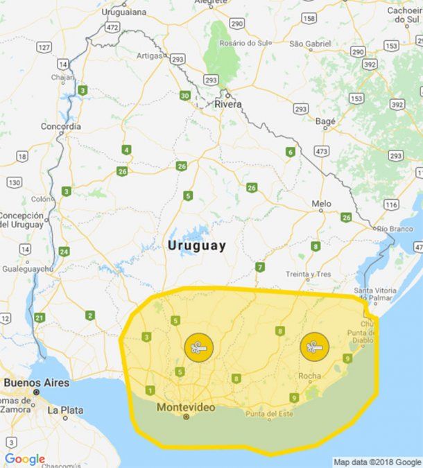 El INUMET advierte por vientos sostenidos de entre 40 y 60 kilómetros por hora con rachas superiores para el sureste del país durante la tarde de este viernes 24 de agosto.