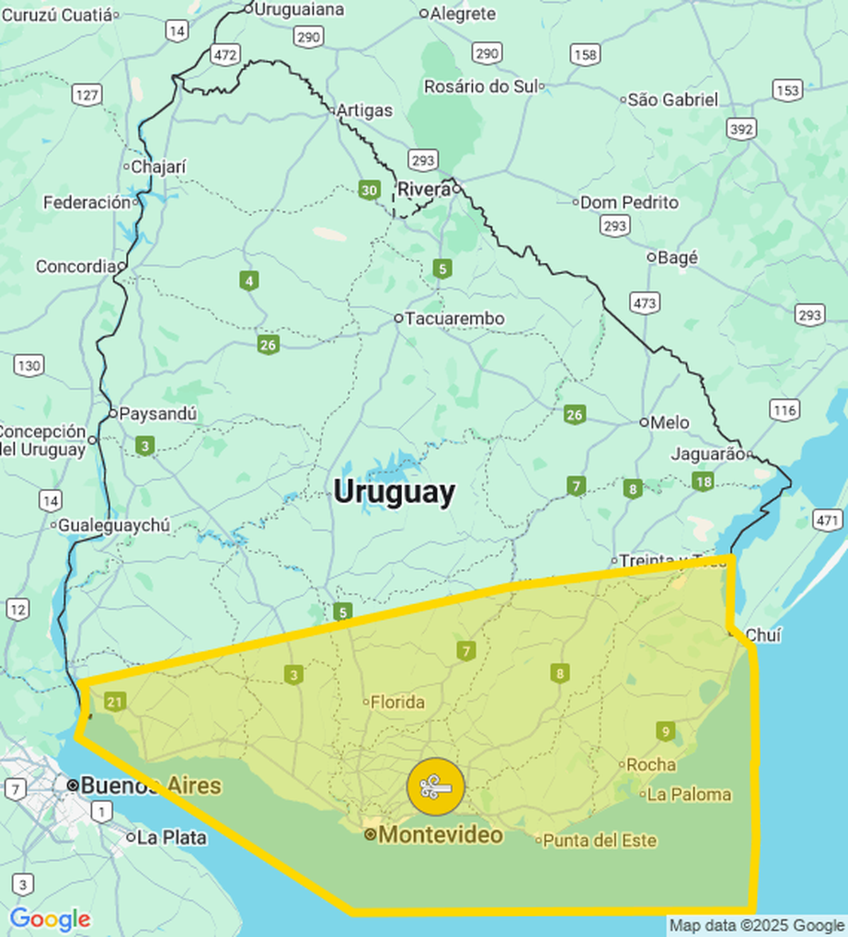 El Instituto Uruguayo de Meteorología (Inumet) emitió una advertencia amarilla por vientos fuertes y persistentes, que rige desde las 14:30 a 21:00 horas, en principio.