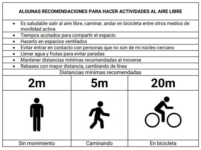También se recomienda a las personas llevar agua y los alimentos necesarios para evitar paradas, y mantener las distancias correspondientes entre las personas para evitar el contacto, teniendo en cuenta también la cantidad de personas que están en ese mismo espacio.