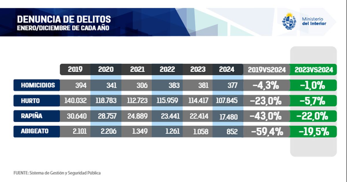 Y esta estas son las últimas cifras de delitos presentadas por el gobierno de Lacalle Pou el 15 de enero de 2025, un mes y medio antes de terminar el período: