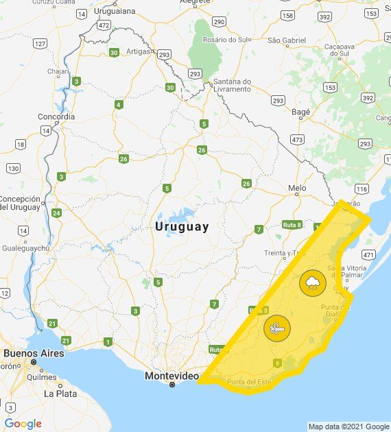 Advertencia de color amarillo en la zona Este del país para la mañana de este jueves, de acuerdo a INUMET. En la parte más al norte de esta región se espera persistencia de lluvias. La vigencia del alerta es hasta la hora 10.