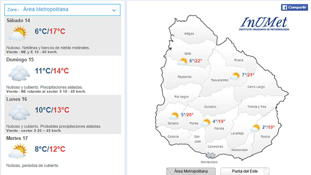 Para este domingo también se aguardan precipitaciones aisladas en la zona metropolitana. La temperatura máxima será de 14ºC y la mínima de 10ºC.