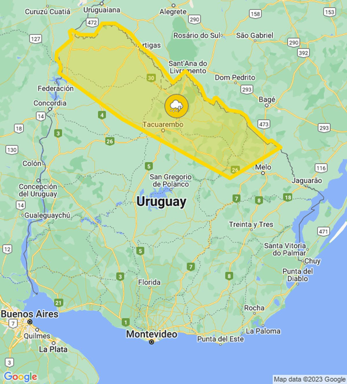 La alerta amarilla de Meteorología por tormentas fuertes es para el norte del país y se actualiza a media mañana.