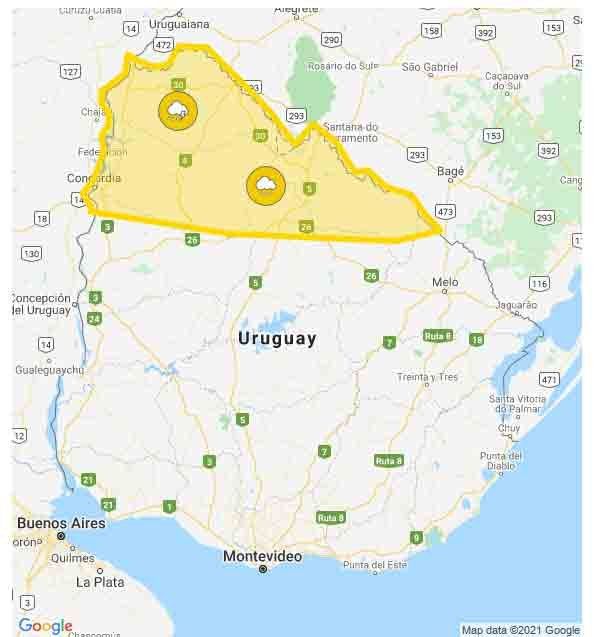 El Instituto de Meteorología actualizó su advertencia a nivel amarillo para el norte del país. El llamado de atención tiene vigencia hasta las 12 horas.