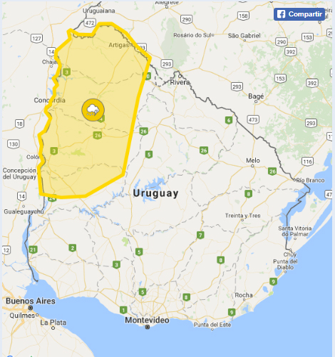 En Artigas el llamado de atención abarca a las localidades de: Artigas, Baltasar Brum, Bella Unión, Bernabé Rivera, Brigadier General Diego Lamas, Cainsa, Campamento, Coronado, El Topador, Javier de Viana, Palma, Santa Rosa del Cuareim, Sequeira y Tomás Gomensoro.