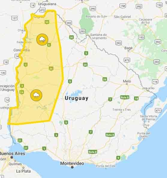 El Instituto de Meteorología emitió una advertencia amarilla que afecta a siete departamentos.