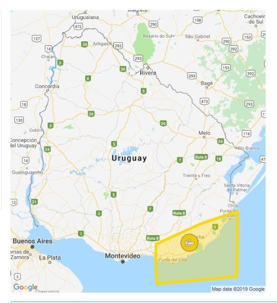 Alerta amarilla por vientos ahora solo afecta a Maldonado y Rocha