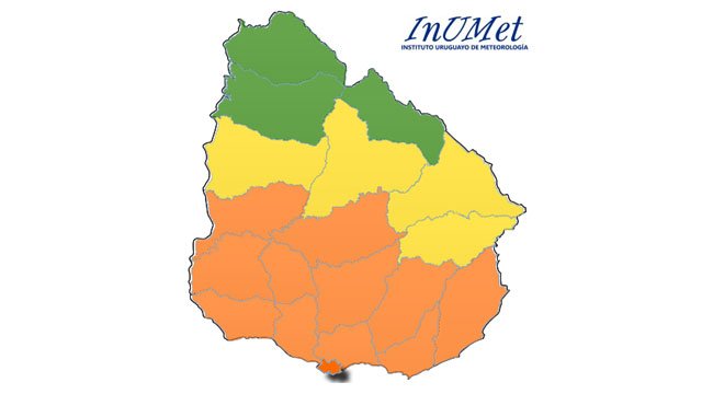 El llamado de atención es de color naranja para: Colonia, Soriano, San José, Flores y Río Negro desde la hora 00 hasta las 10 de la mañana de este jueves.