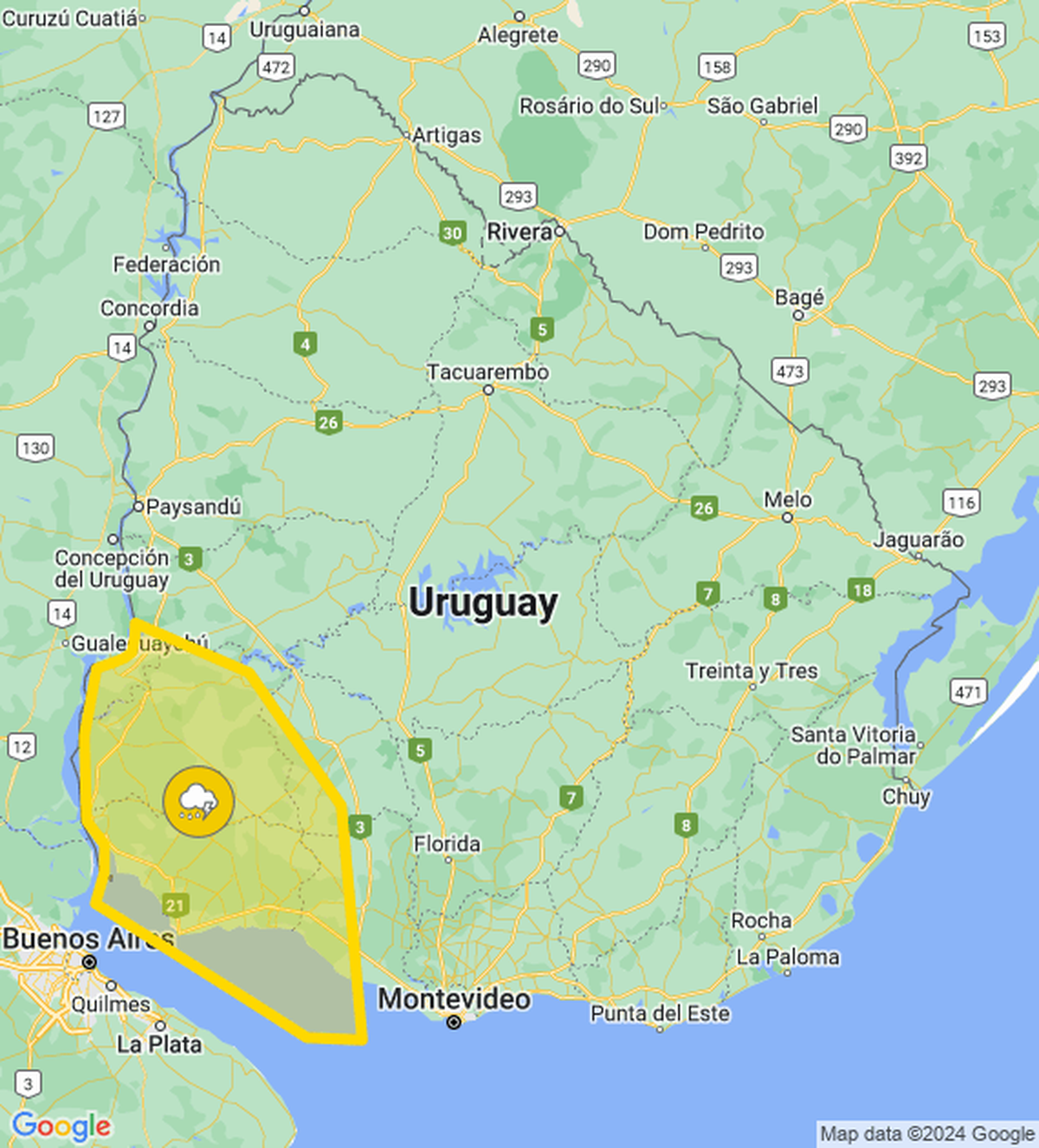 El Instituto Uruguayo de Meteorología( Inumet) emitió una alerta amarilla por tormentas fuertes, que rige desde las 16:35 hasta las 19:30, aunque puede ser modificada ante eventuales cambios.