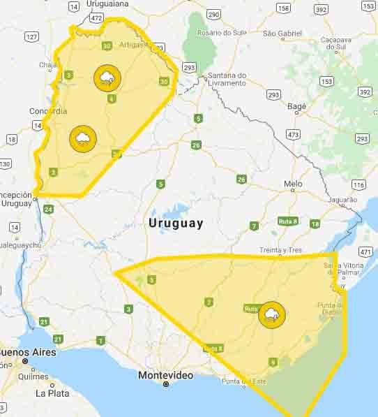El Instituto de Meteorología emitió dos alertas amarillas por tormentas fuertes y lluvias intensas que rigen hasta las 13.45.