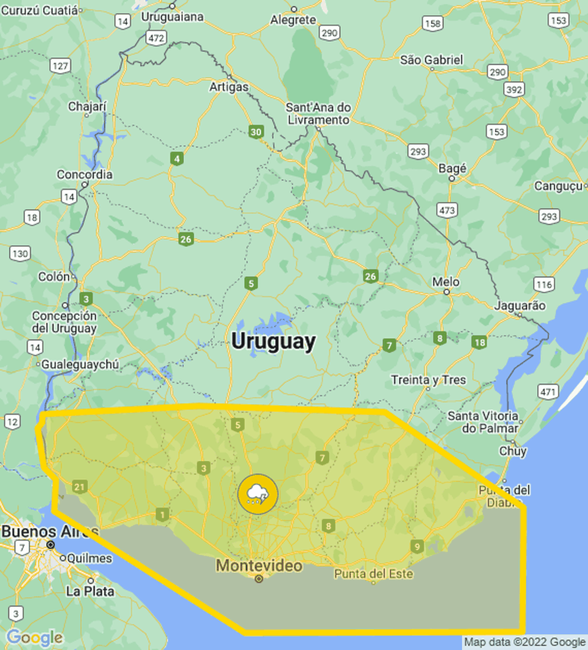 Meteorología volvió a actualizar la alerta amarilla que emitió esta tarde por tormentas fuertes y lluvias intensas. Rige hasta las 23.00 horas.