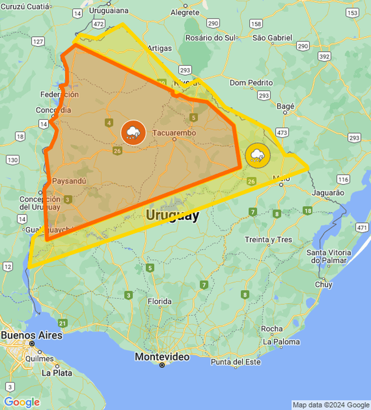 "Se continuará monitoreando la situación y se informará ante eventuales cambios", añadió Inumet.