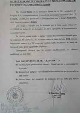 El documento requerido por el juzgado del crimen organizado se había traspapelado y por eso el magistrado había iniciado indagatoria por desacato.