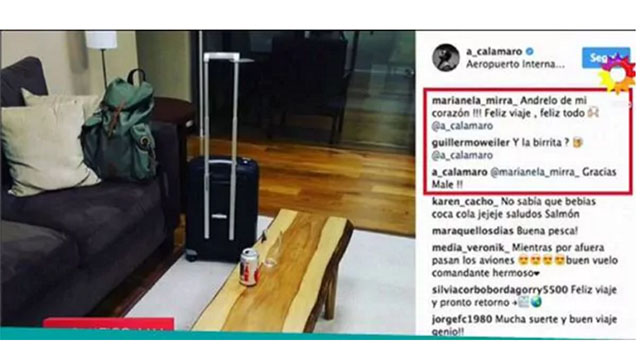 En una foto de Calamaro donde se ven unas valijas, previo a un viaje a Madrid, Mirrá le deseó un feliz viaje y él le respondió.