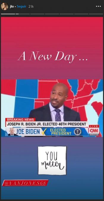 Lady Gaga, Jennifer López, Jennifer Aniston, Selena Gómez, Ricky Martin, Salma Hayek, Camila Cabello, son algunos de los que publicaron sobre la elección.