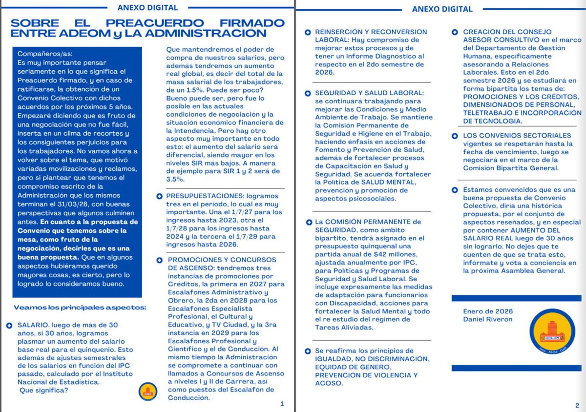 Este "anexo digital" resume el acuerdo alcanzado entre el sindicato y la Intendencia, finalmente rechazado por la asamblea: