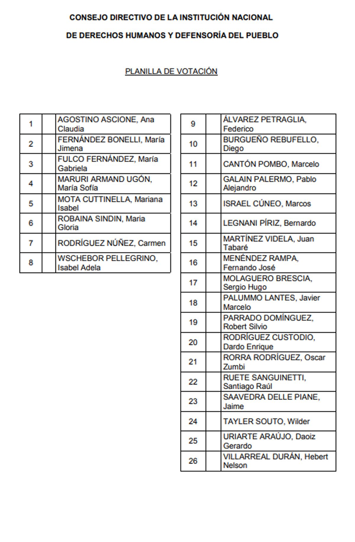 La comisión especial de legisladores que trabajó sobre el tema elevó al máximo órgano del Poder Legislativo una lista con 26 candidatos: 8 mujeres y 18 hombres.