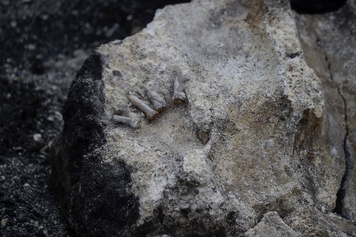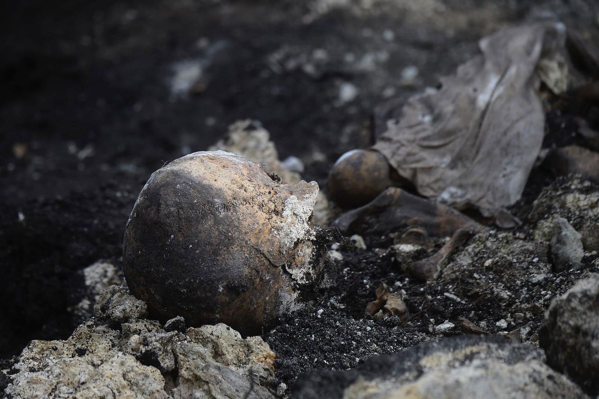 Así estaban los restos óseos hallados esta semana en el Batallón 14, con cal y una losa de material encima