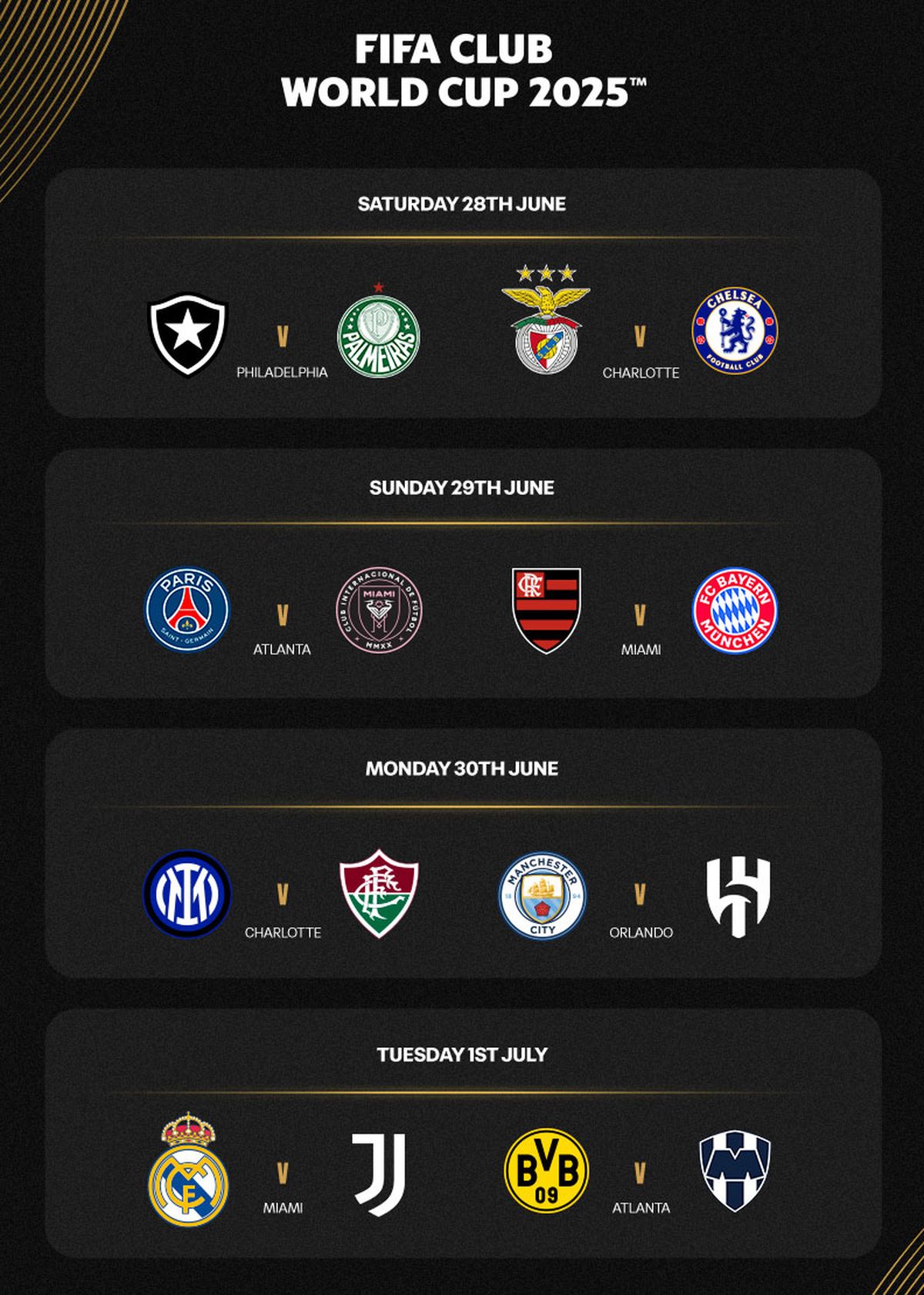 Por América se destaca la clasificación de cuatro equipos de Brasil: Palmeiras, Botafogo (que se cruzan entre ellos), Flamengo y Fluminense. A los que se suma el Inter Miami de Estados Unidos y el Monterrey de México.