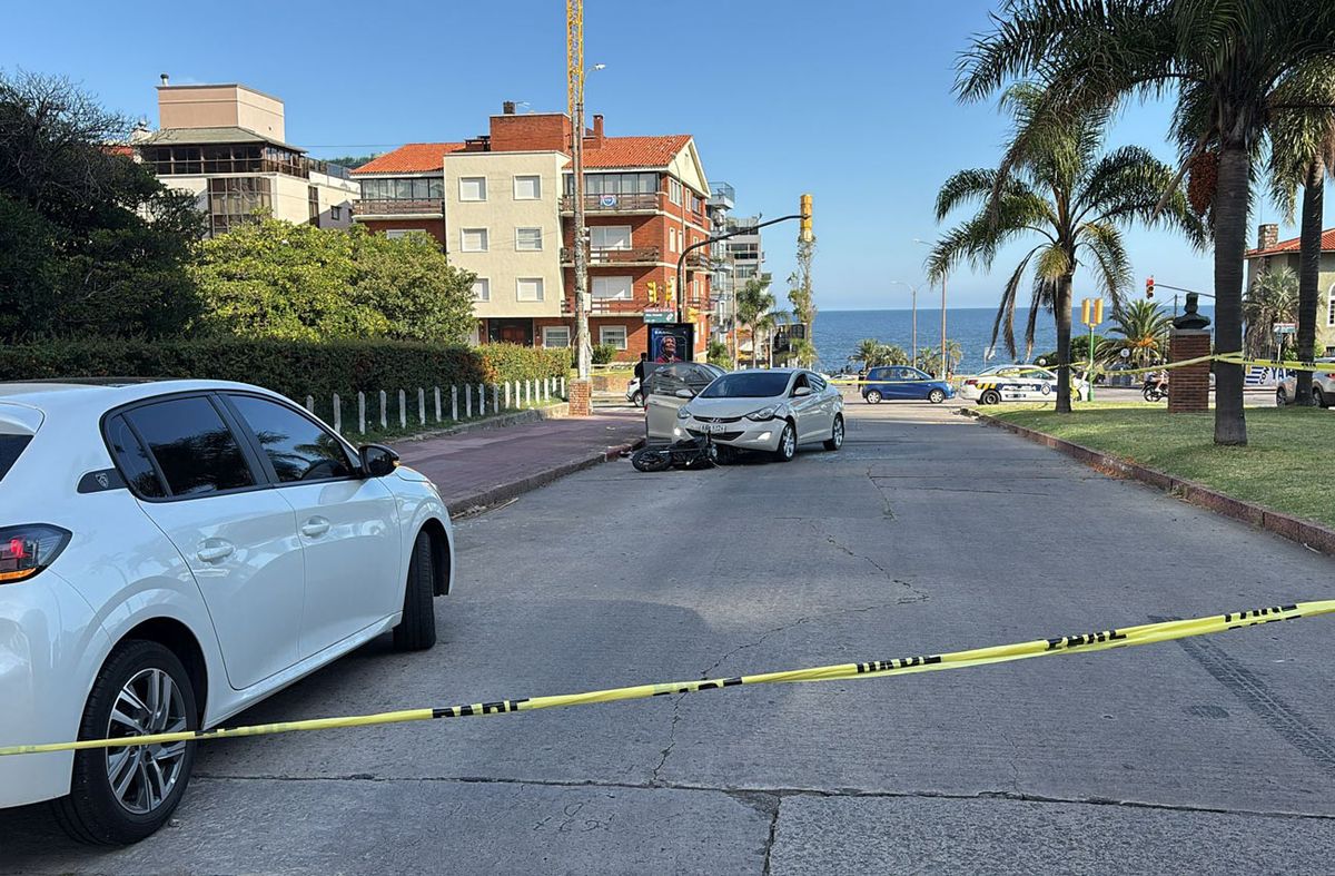 El auto marca Hyundai subía por 26 de Marzo cuando desde una, de dos motos que lo seguía, abrieron fuego contra el vehículo que recibió varios impactos, principalmente en su lado derecho. Una de las motos quedó debajo del auto y su conductor se dio a la fuga en un coche que lo esperaba, según supo Subrayado en la escena.