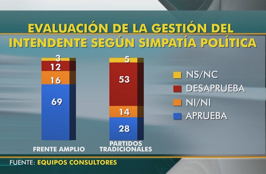 En la encuesta se evaluó la gestión del intendente según la simpatía política. Entre los votantes del Frente Amplio, el 80 % aprueba la gestión de Martínez, el 12 % la desaprueba, el 16% ni aprueba ni desaprueba y el 3% no sabe o no contesta.