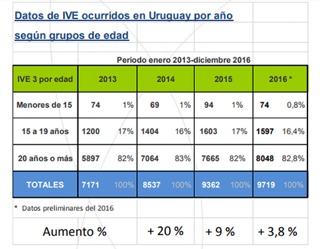 En 2014 el aumento respecto a 2013 fue de 20%. Para el 2015 la cantidad de abortos legales subió 9%, y aumentó 3,8% en 2016.