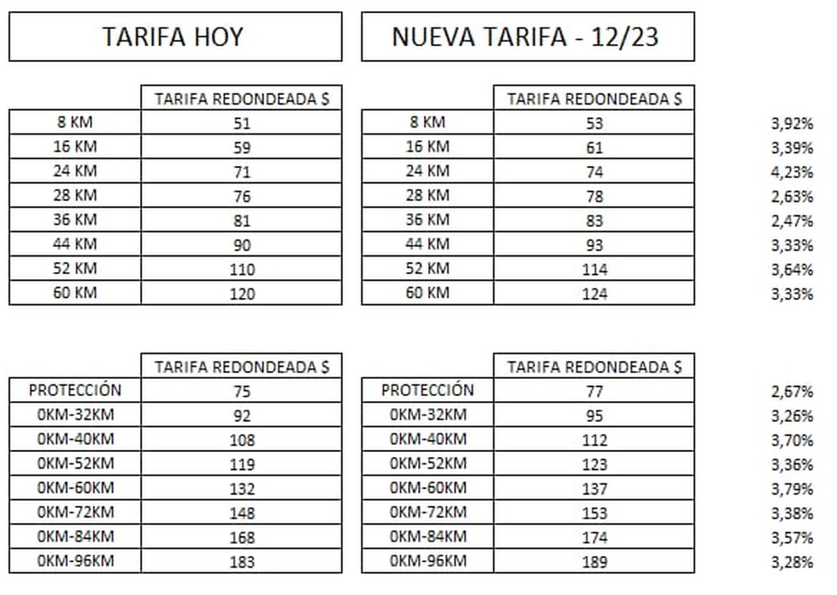 Estas son las nuevas tarifas informadas por el MTOP a las empresas: