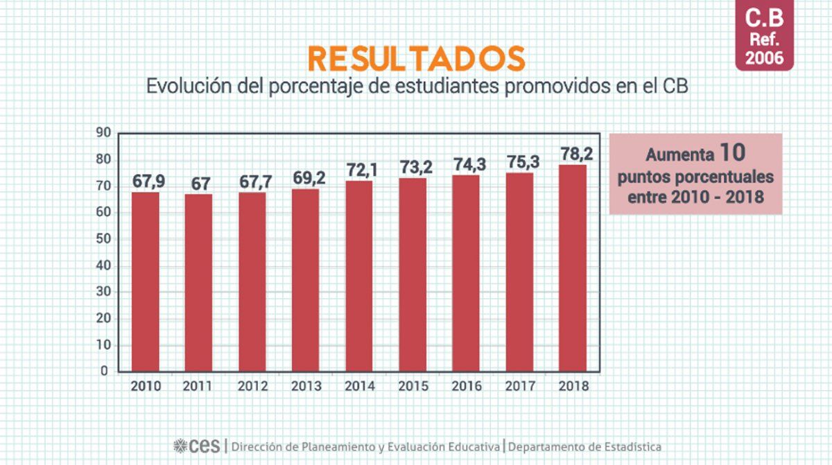 “La promoción en el CB mantiene la tendencia a incrementarse exhibida desde 2010”, dice el informe, y destaca que “en el período 2010-2018 aumentó 10 puntos porcentuales”.