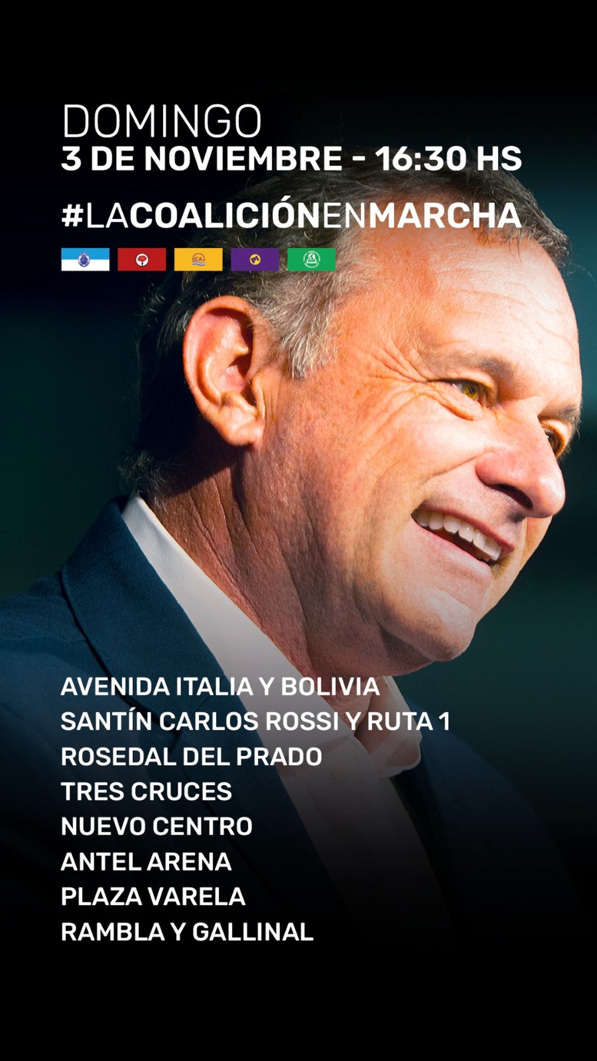 Las actividades comienzan a la hora 16:30 con la presencia del candidato a la presidencia Álvaro Delgado en la plaza Varela y de la candidata a la vicepresidencia Valeria Ripoll a la misma hora en Santín Carlos Rossi y Ruta 1.