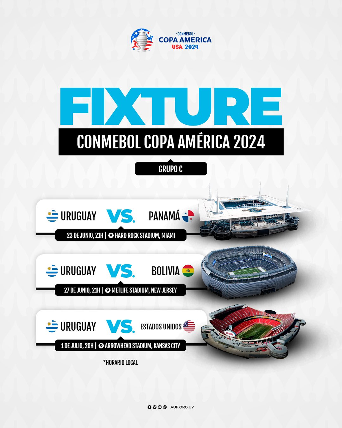 La Selección Uruguaya se enfrenta el 23 de junio a Panamá, el 27 de junio a Bolivia y el 1 de julio a Estados Unidos.