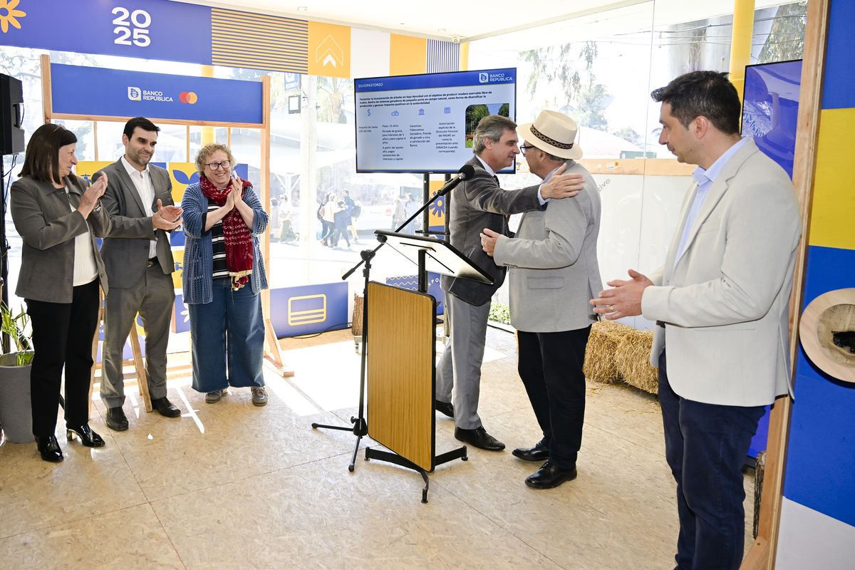 Con presencia del presidente de nuestra institución, Cr. Álvaro García, el ministro de ganadería, agricultura y pesca, Dr.Vet. Alfredo Fratti y otras autoridades institucionales y nacionales, se presentó en el stand del BROU de la Rural del Prado el plan de financiación para silvopastoreo.