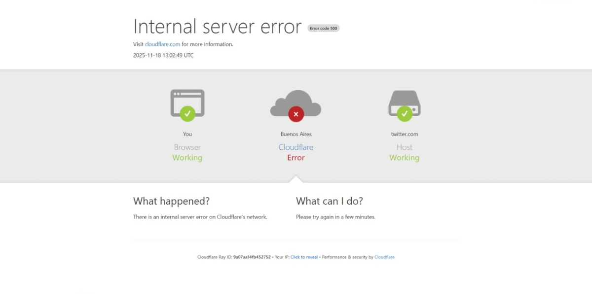 Cloudflare, una red global que protege y acelera sitios web y aplicaciones, actuando como un intermediario entre los usuarios y los servidores, dejó de funcionar en la mañana de este martes.