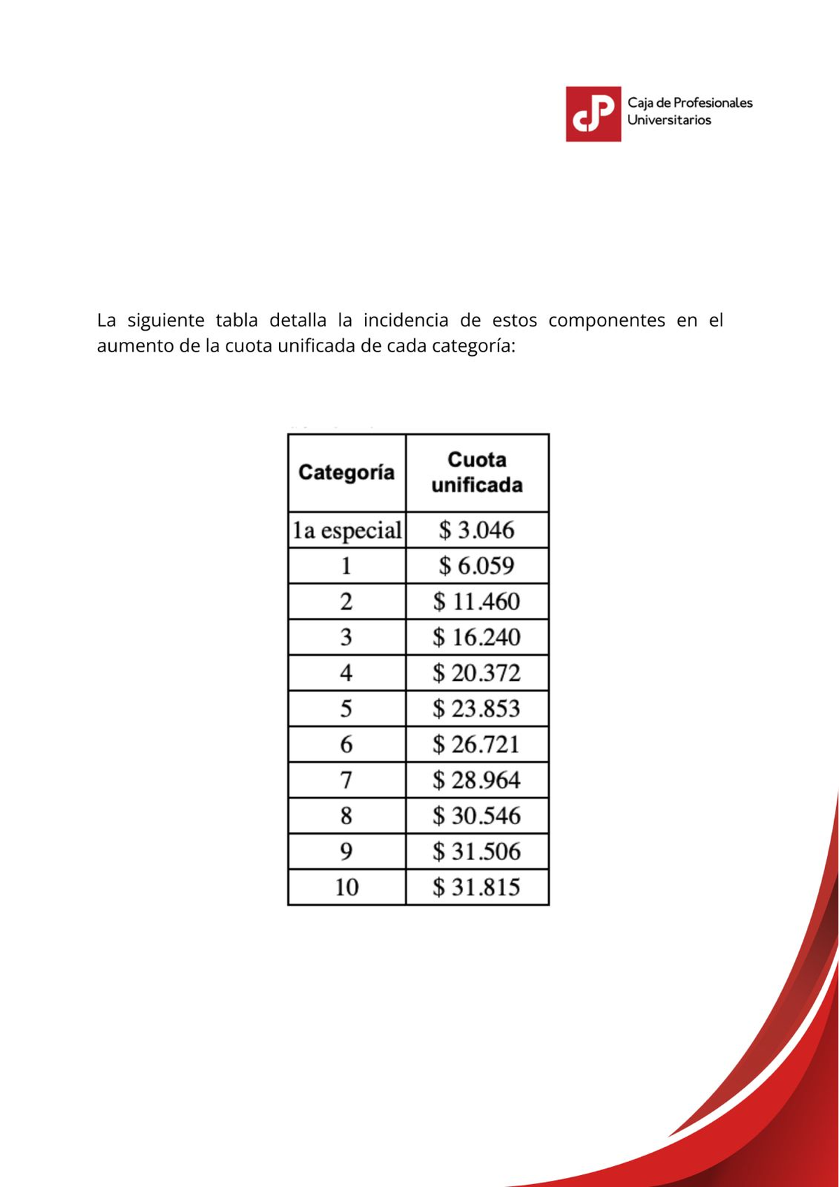 La Caja de Profesionales Universitarios informó el aumento de la tasa de aportación de 16,5% a 18,5%, que entra en vigencia este mes.