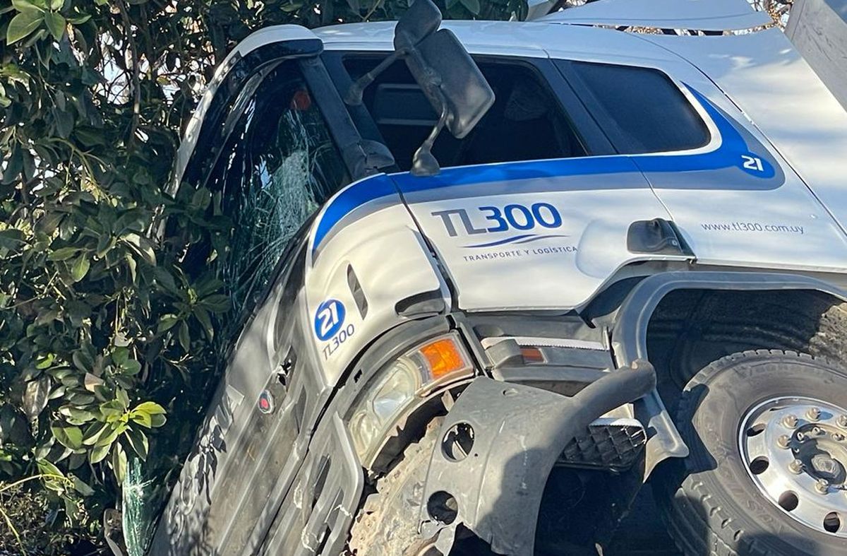 Ocurrió temprano en la mañana de este jueves. El camión con carga de celulosa circulaba por los accesos de Montevideo, hacia el puerto, cuando el conductor perdió el dominio, se fue hacia la derecha, bajó a la calle lateral y terminó impactando contra un cartel de publicidad, casi encima de una viviendas del lugar.