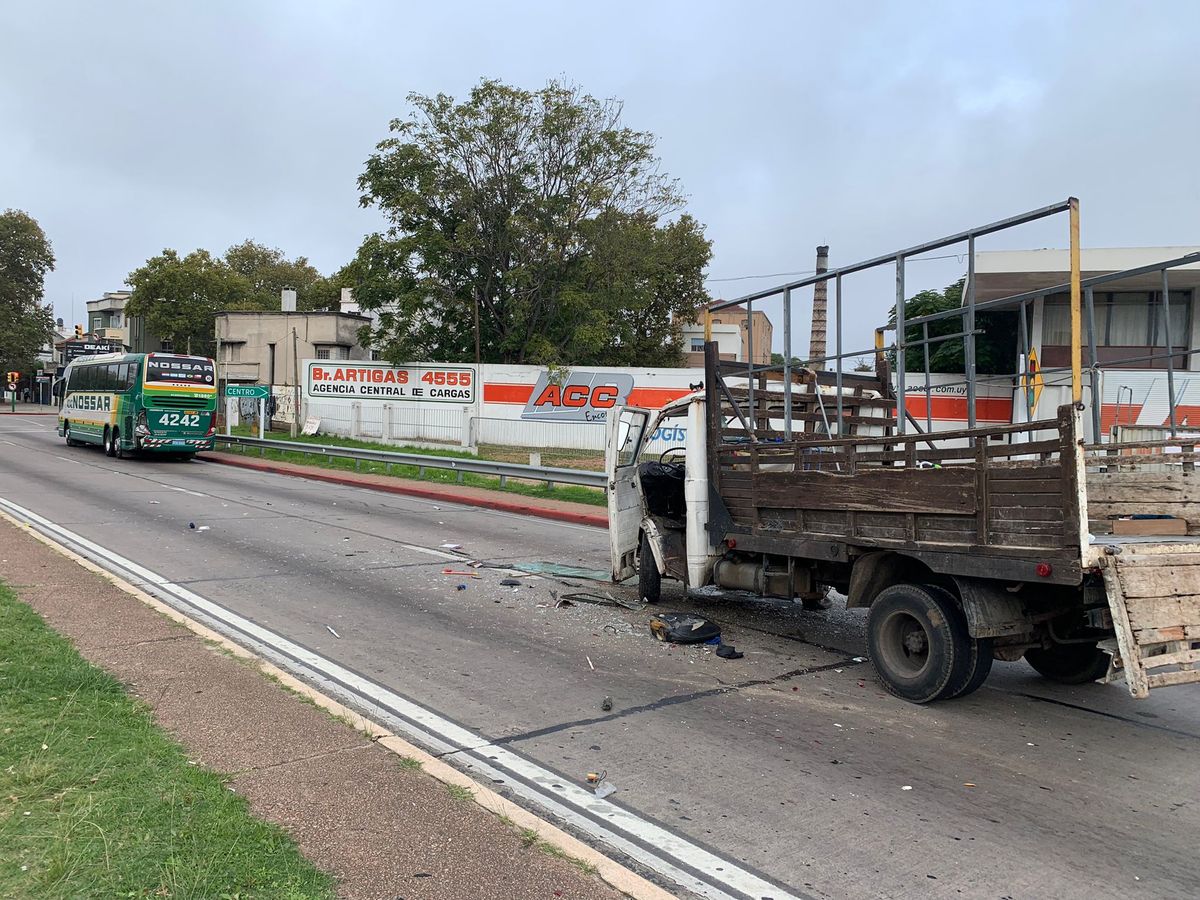 Un camión que circulaba con un equipo de baby fútbol chocó este domingo contra un auto y un ómnibus de transporte interdepartamental en Bulevar Artigas y Uruguayana en la zona de Capurro.