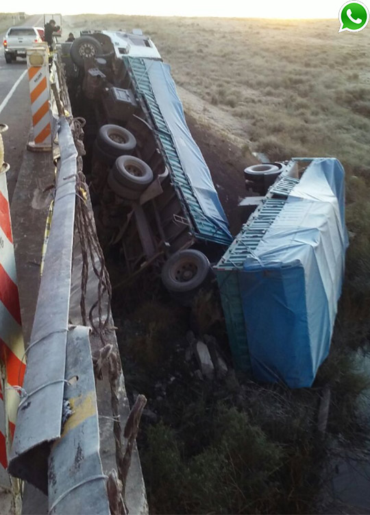 Un camión con zorra volcó en la Ruta 57 a la altura del kimómetro 30.600, cuando circulaba por un puente desde Cardona a Flores.