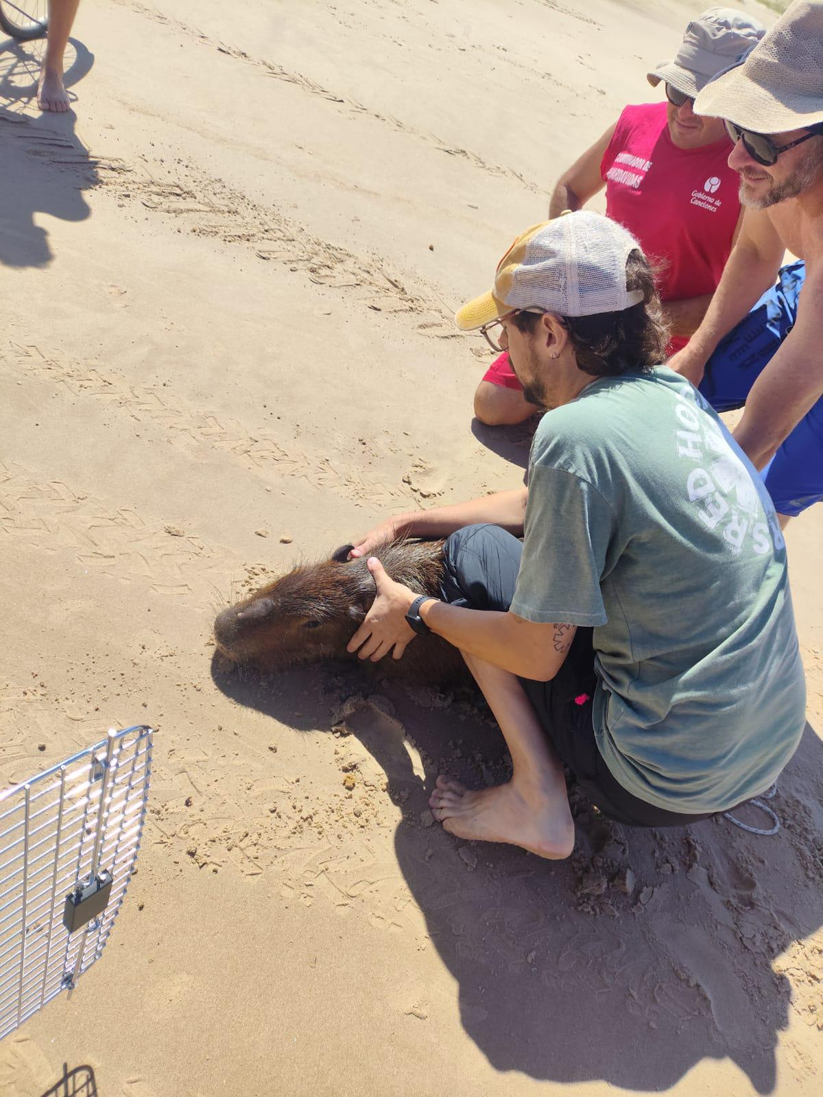 Carpincho apareció en playa de Ciudad de la Costa y debió ser capturado
