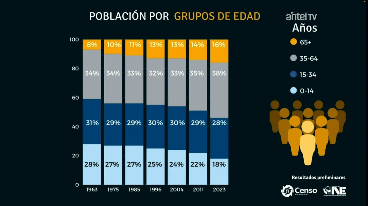 Otro dato relevante es la edad mediana de la población en Uruguay: “en el 2004 era de 29 años y ahora es de 38”.